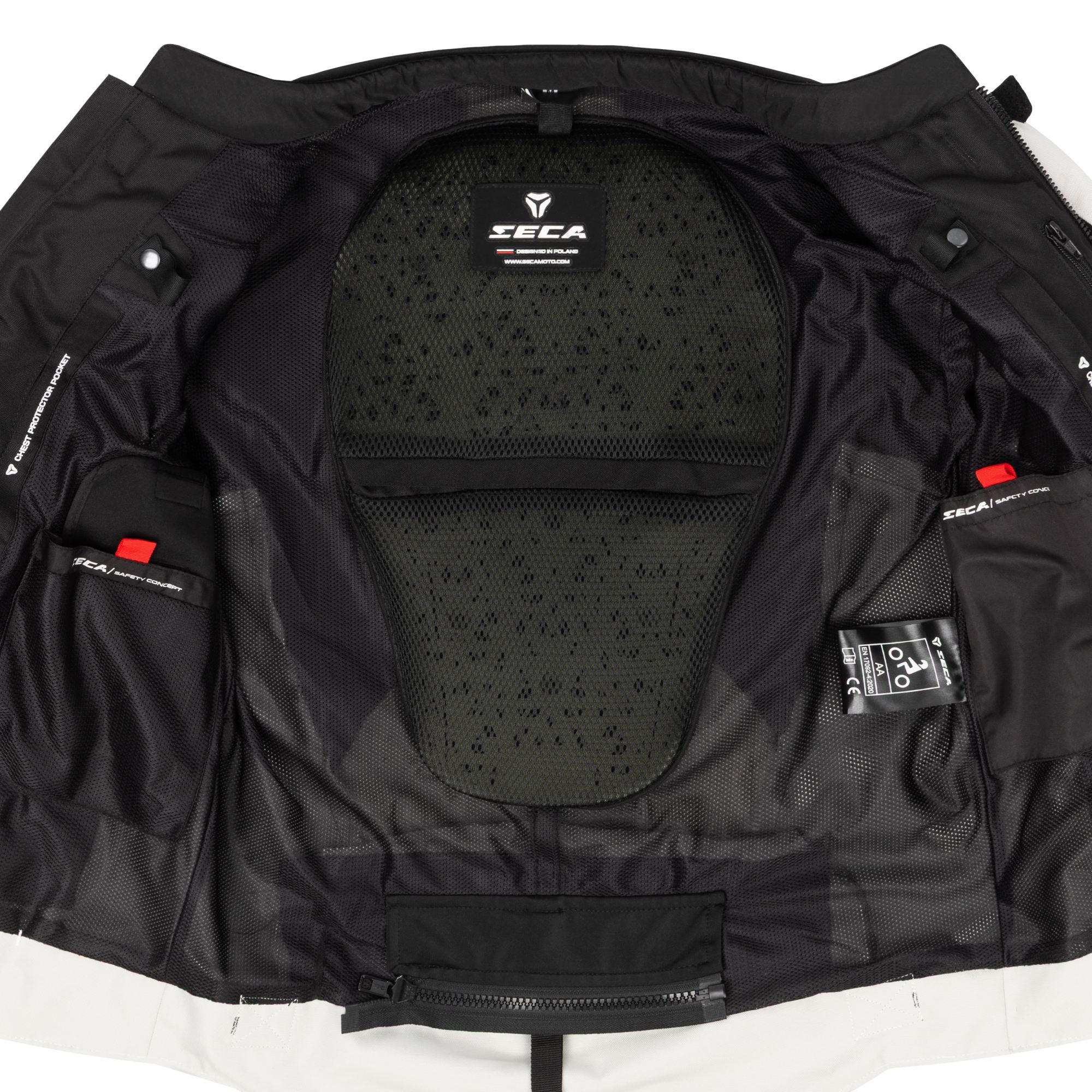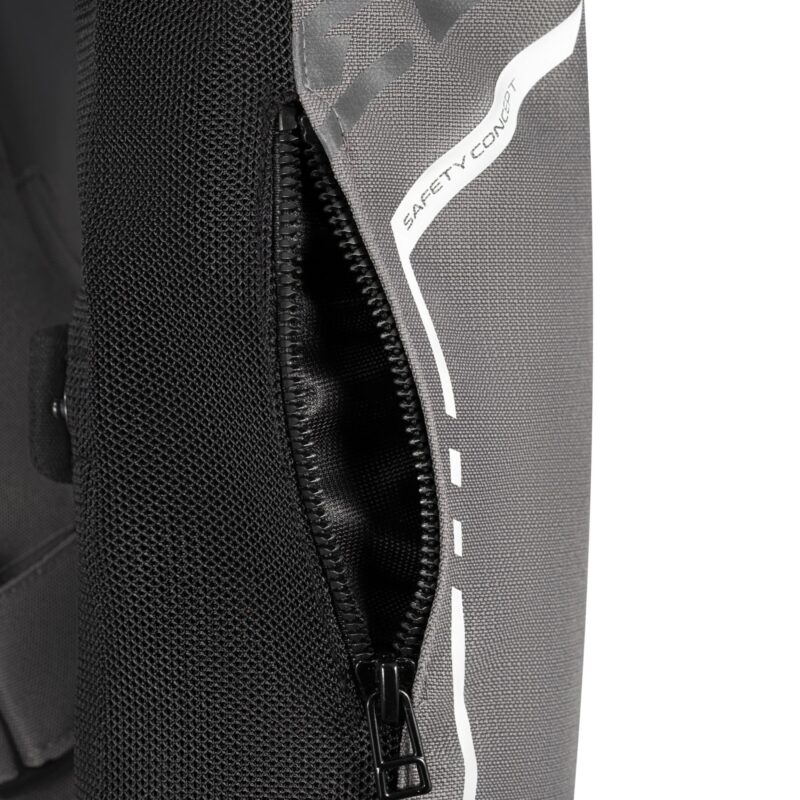 - Ärmel: 1 Reißverschlusstasche für Karten (linker Unterarm)